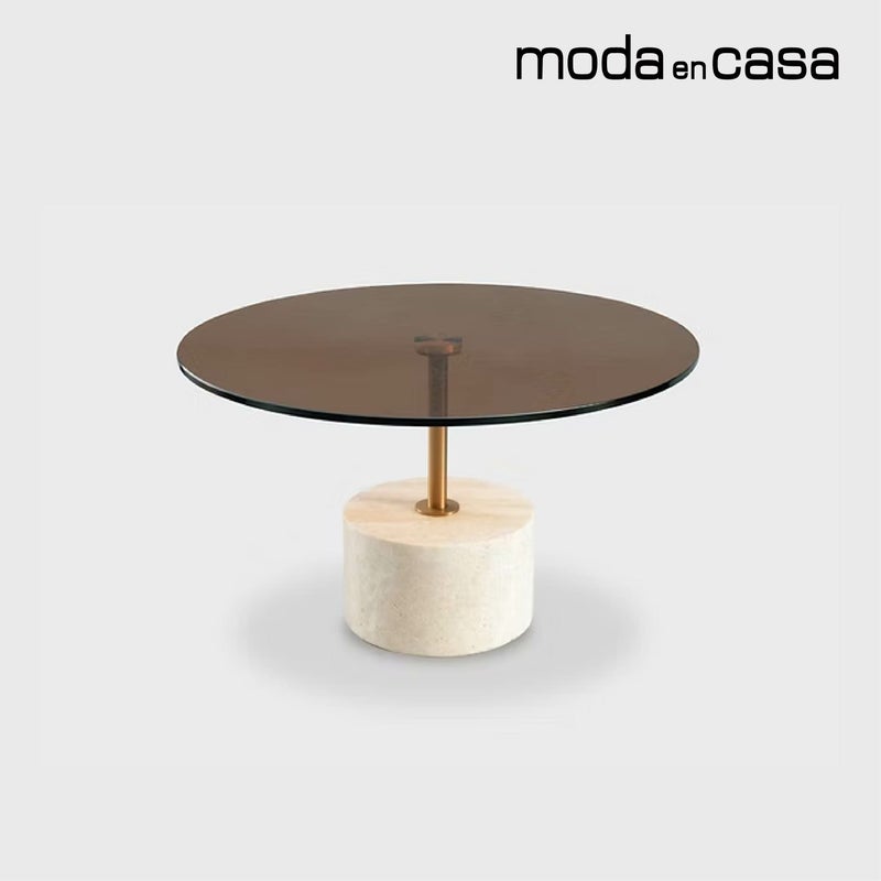 コンクリートとガラス、 異素材コンビネーションのコーヒーテーブル。重厚感のある素材でありながら、 曲線で構成されたラインで柔らかさも演出します。