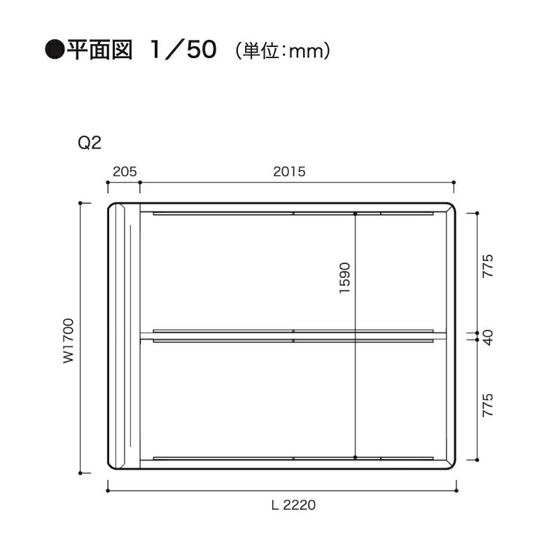 幅170cm × 奥行き222cm × 高さ85cm × ボトムハイ20.5cm